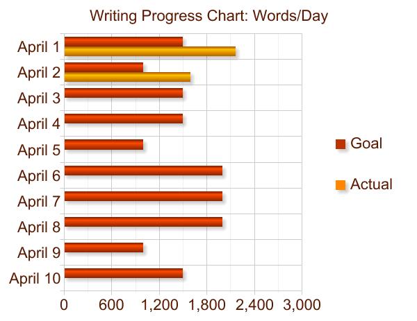 As you can see, my word count has been somewhat sketchy lately. Either fatigue from work or craziness from the family has been interfering.